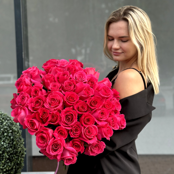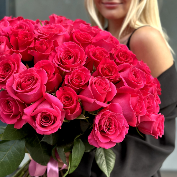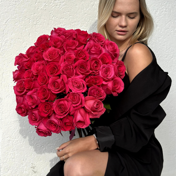 Букет из малиновых высоких роз