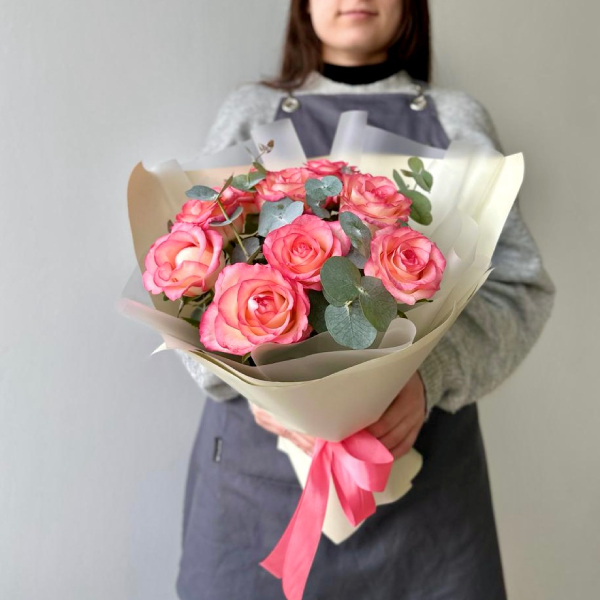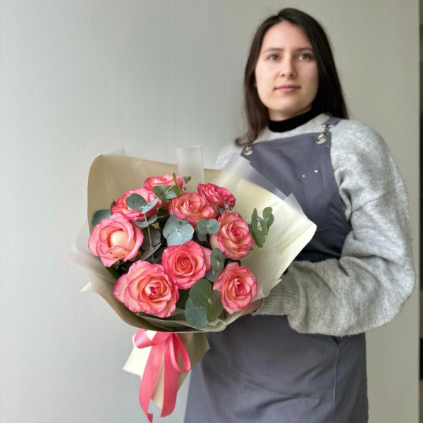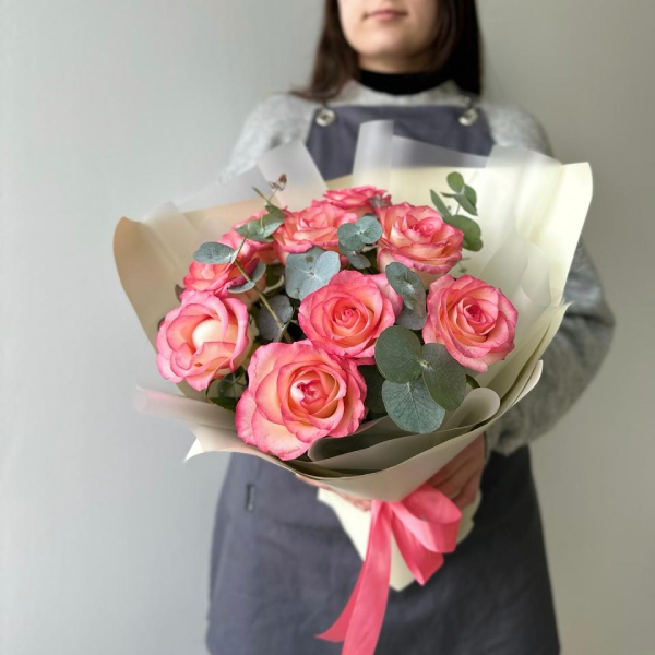 Букет из роз с эвкалиптом