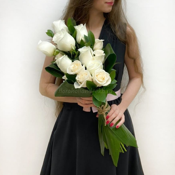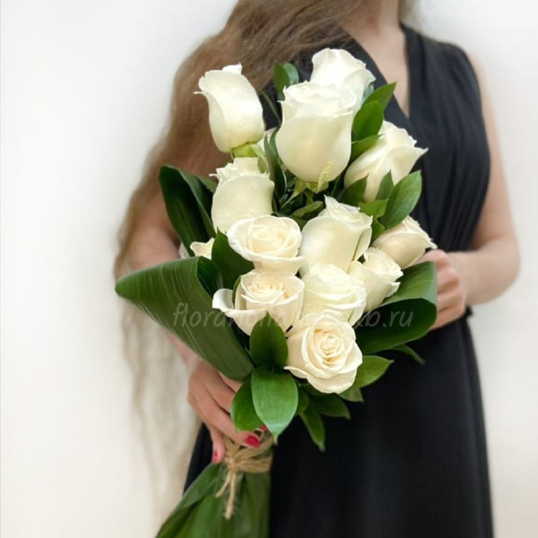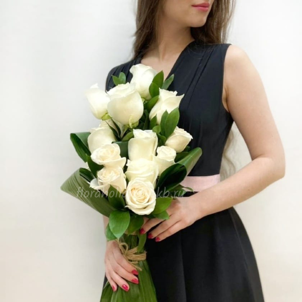 Вертикальный букет из белых роз
