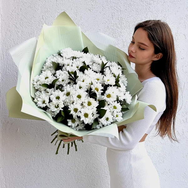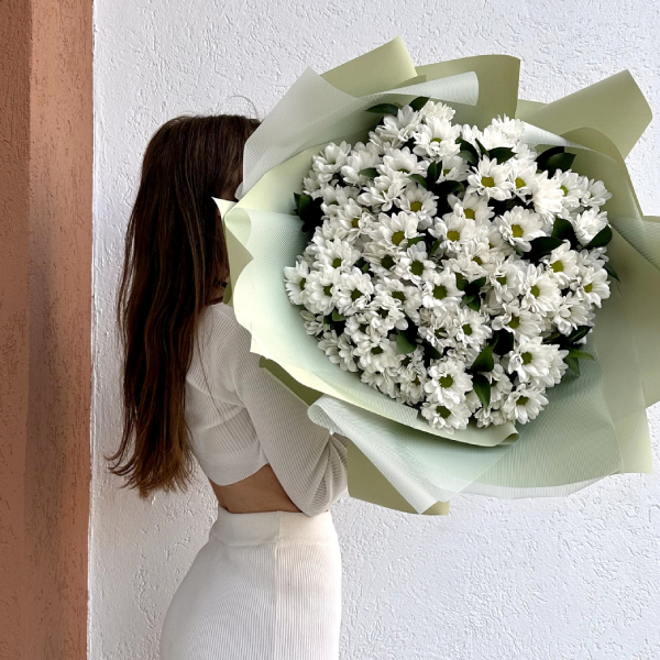 Пожалуйста, уточняйте у администратора цвет хризантем и упаковки, имеющихся в наличии.