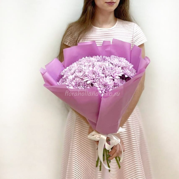 По Вашему желанию букет может быть выполнен в другой цветовой гамме, пожалуйста, уточняйте у администратора цвет хризантем, имеющихся в наличии.