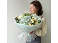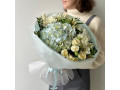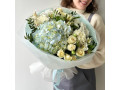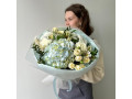 Воздушный голубой букет с гортензией и кустовыми розами "Глори" от 2990