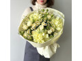 Французская роза, кустовая роза, танацетум, грин бэлл, упаковка, лента атласная