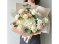 Легкий букет с нежной гортензией и кустовыми пионовидными розами "Паула" от 3100