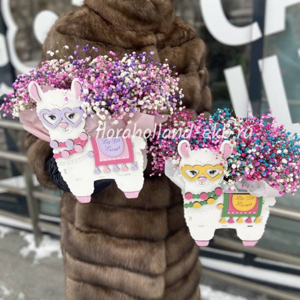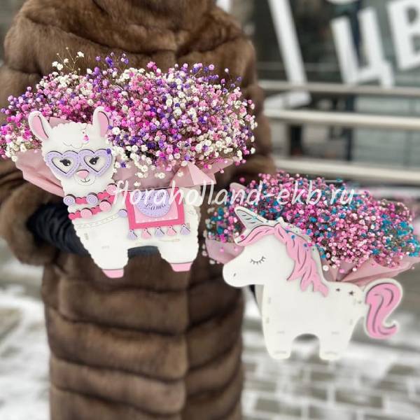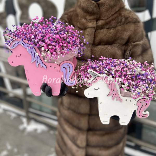 Композиция из цветной гипсофилы в форме единорога МИНИ:
