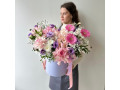 Композиция в шляпной коробке с французскими розами в розово-сиреневой гамме № 80 от 7950