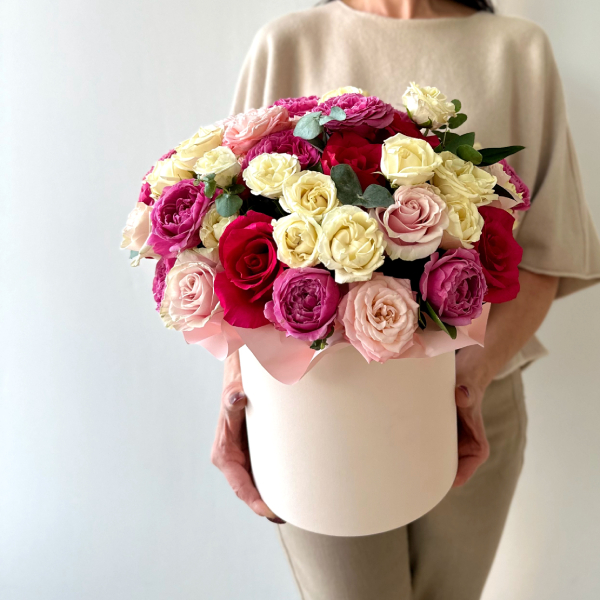 Роза, роза кустовая пионовидная, роза кустовая, эвкалипт