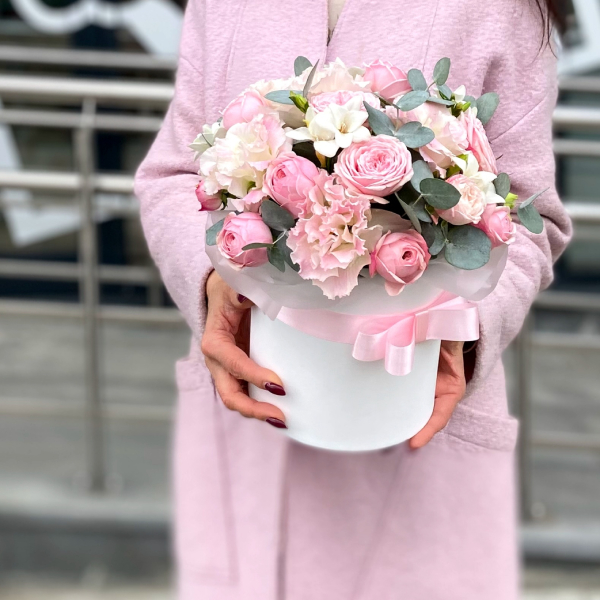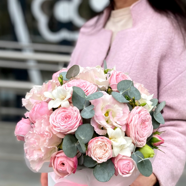 Роза кустовая пионовидная, фрезия, эустома, эвкалипт