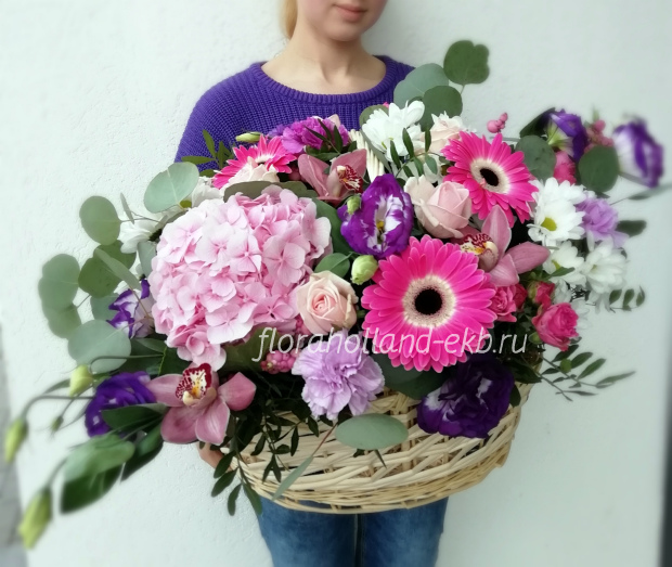Корзина с гортензией и герберами