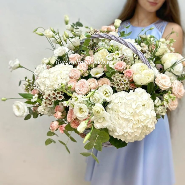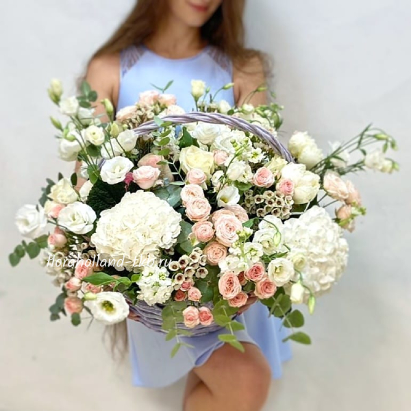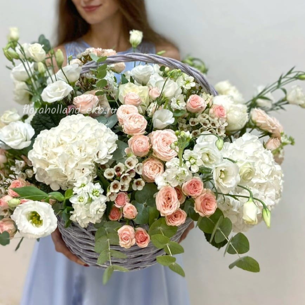 Корзина с гортензией и кустовой розой