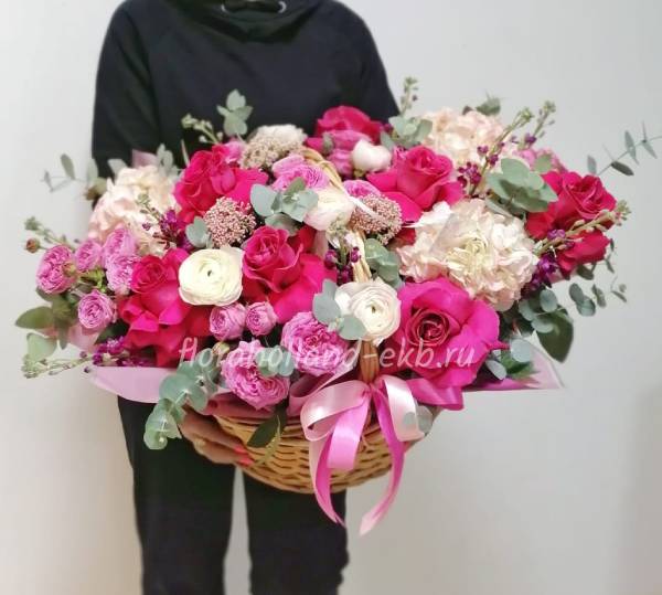 Гортензия, роза, роза пионовидная кустовая, ранункулюс, маттиола, озотамнус, эвкалипт