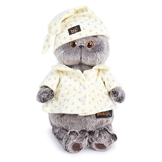 Кот Басик в вязаной шапке и шарфе, 22 см