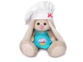 Зайка Ми в трогательном комплекте маленького поваренка. Хлопковый передник с термонаклейкой в виде пирожного и поварской белоснежный колпак с малиновым бантиком сбоку.