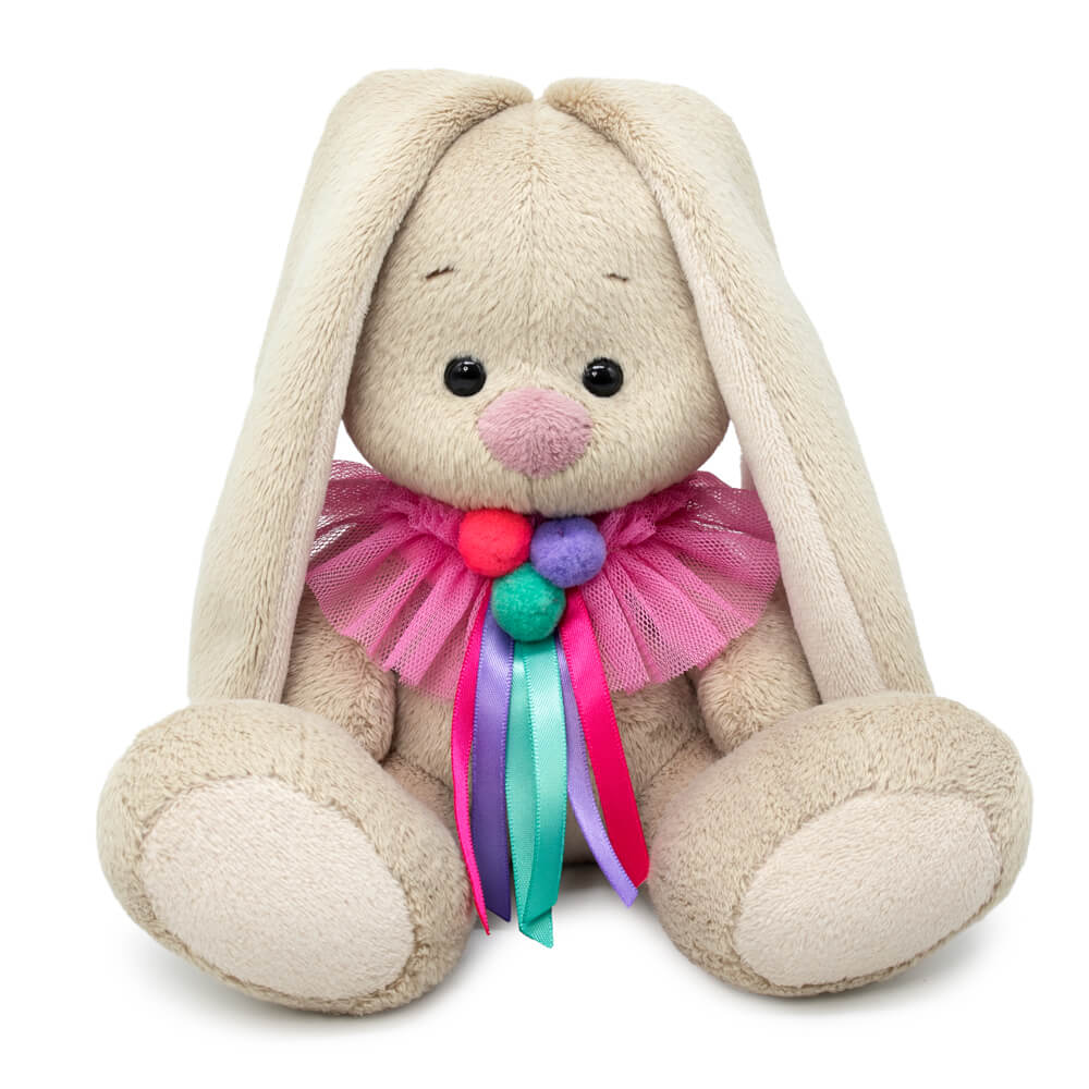 Зайка Ми в воротнике с помпонами и лентами, 15 см
