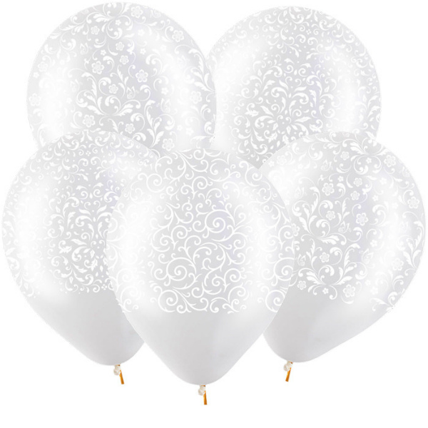 Прозрачные латексные гелиевые шары с изящным белым орнаментом