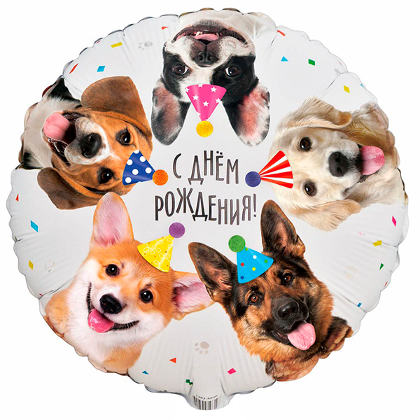Шар фольгированный гелиевый "С днем рождения!" Собачки