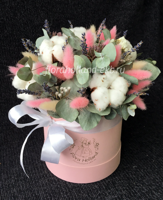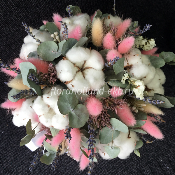 Хлопок, лагурус, лаванда, статица, эвкалипт
