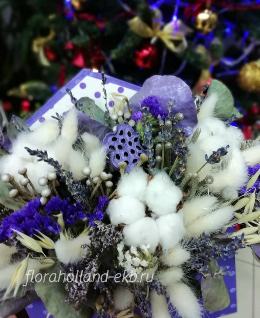Лаванда, хлопок, лагурус, лотос, бруния, статица, лимониум, эвкалипт