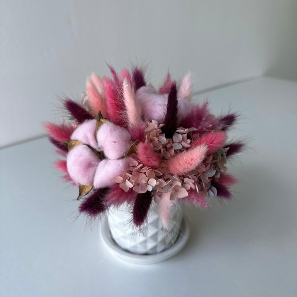 Гортензия стабилизированная, хлопок, лагурус