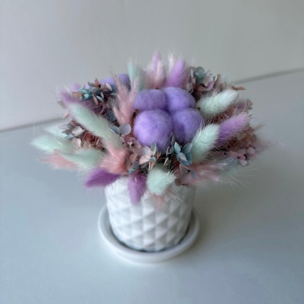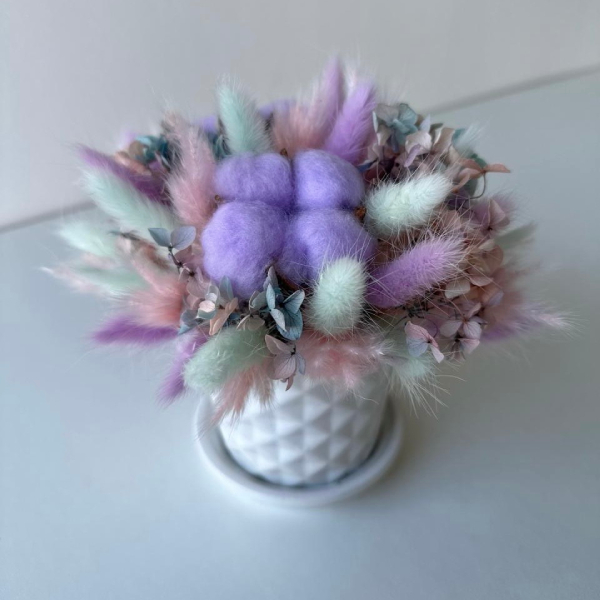 Гортензия стабилизированная, хлопок, лагурус