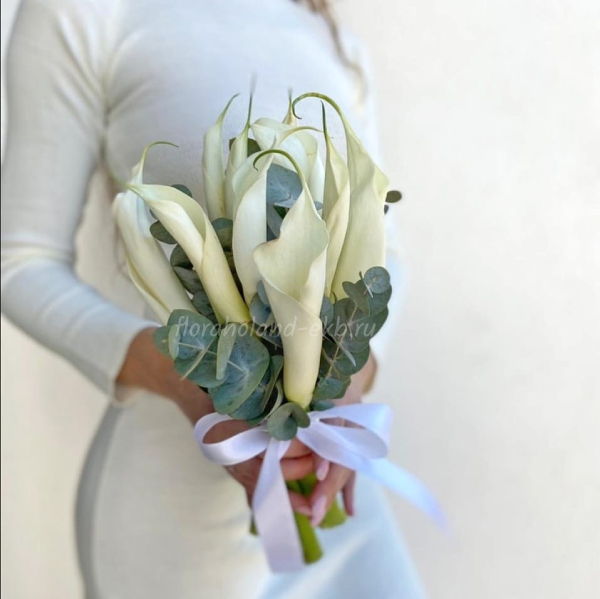 Букет невесты из белых калл и ароматного эвкалипта "Сэйнн" от 5500
