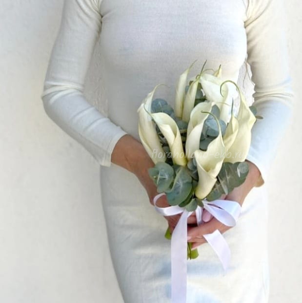Букет невесты из белых калл и ароматного эвкалипта "Сэйнн"
