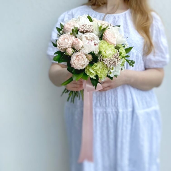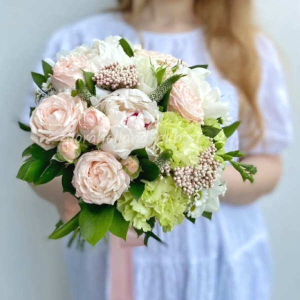 Букет невесты с пионовидными розами и пионами "Стерр" от 7290