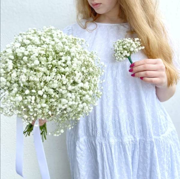 Букет невесты из белой воздушной гипсофилы "Аника"