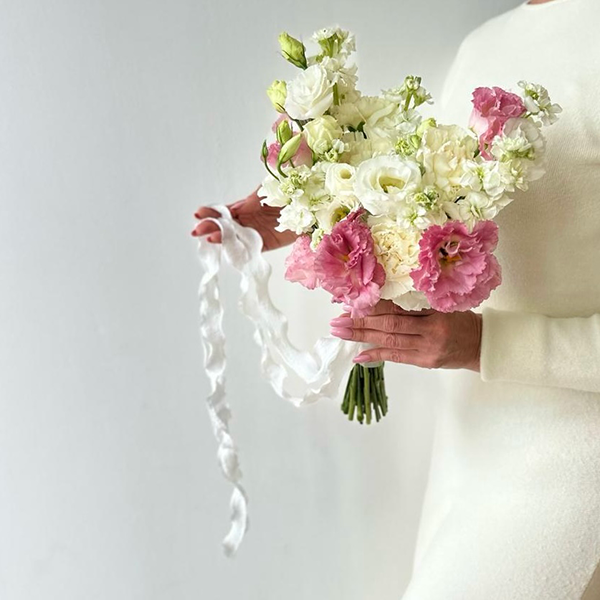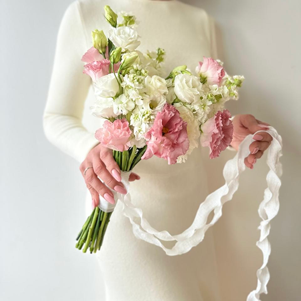 Букет невесты из нежных эустом и диантусов "Лотте" от 5750