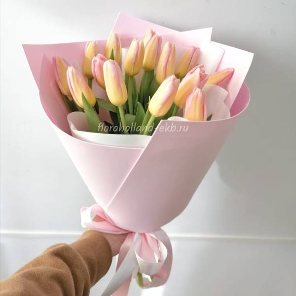 Пожалуйста, уточняйте у администратора цвет тюльпанов, имеющихся в наличии. По Вашему желанию флорист может выполнить разноцветный букет.