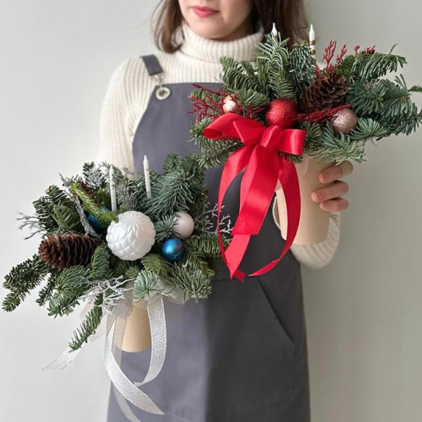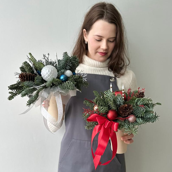Новогодняя композиция в стаканчике из ароматной ели очень популярна в этом сезоне, будет прекрасным подарком для друзей, любимых, коллег или украсит Ваш дом.