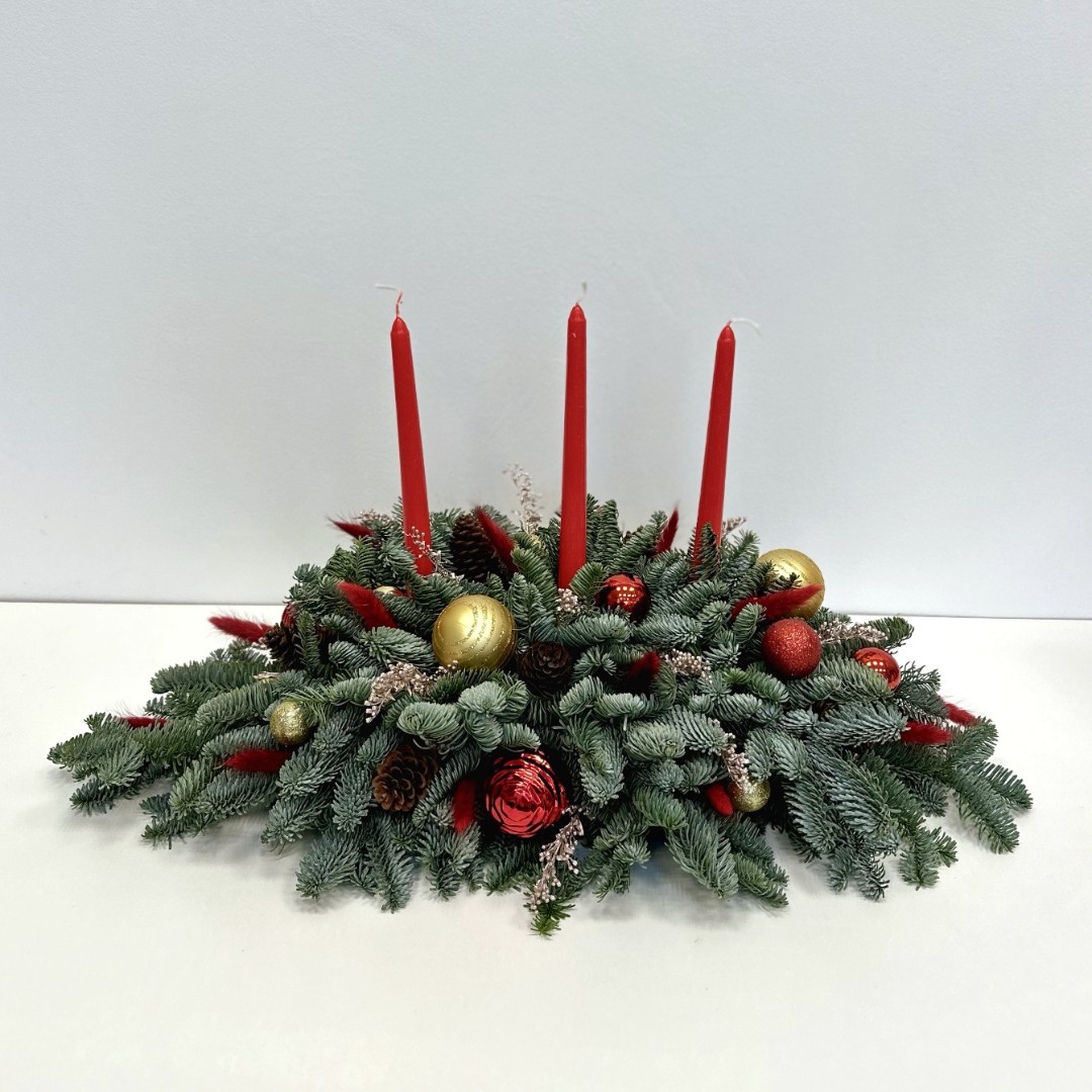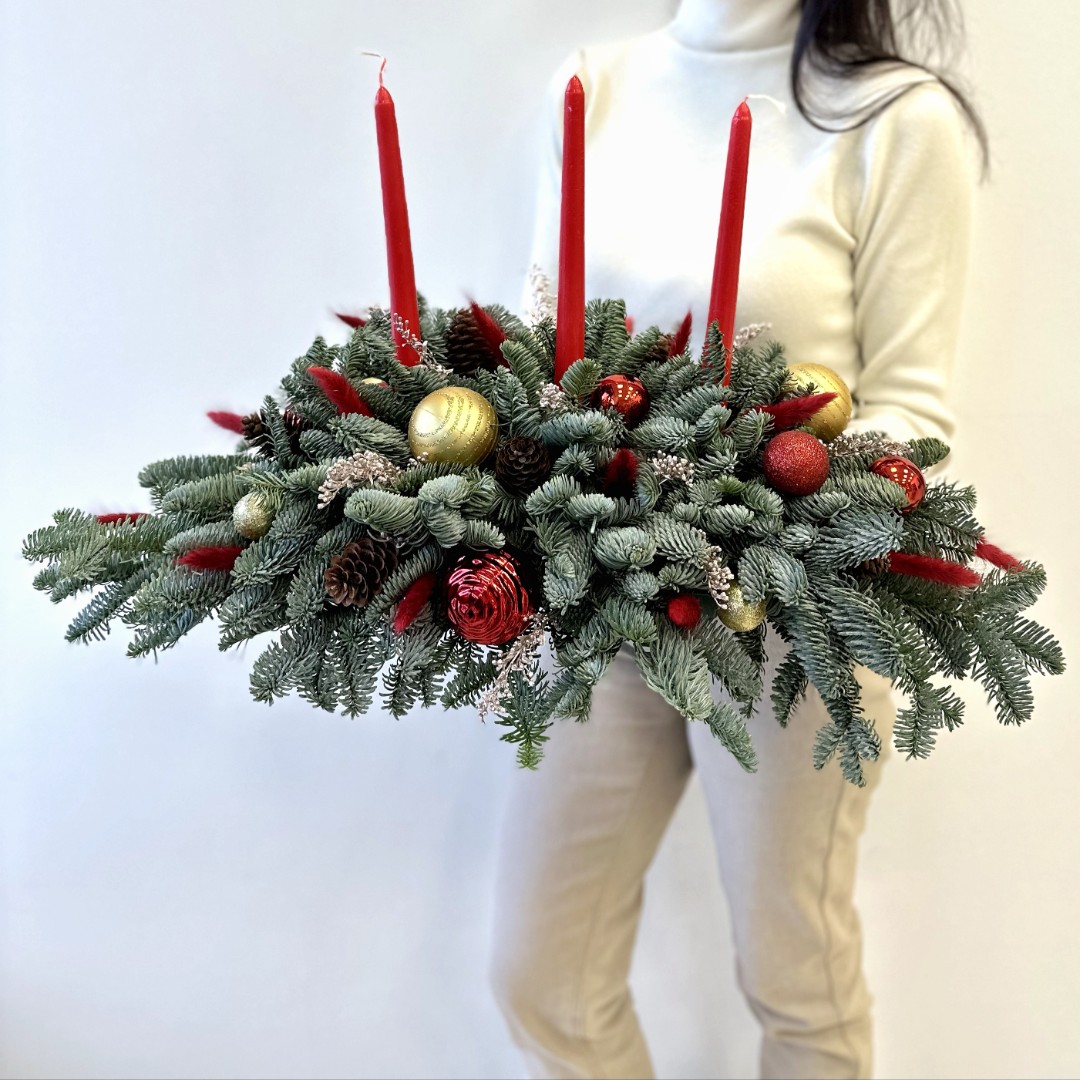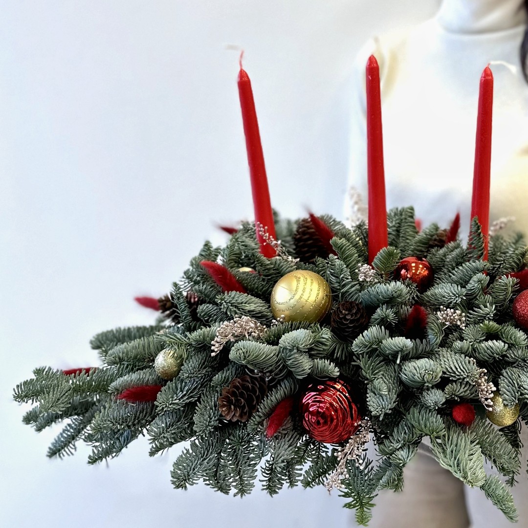 Композиция на стол из нобилиса (датской ели) со свечами, 60-70 см