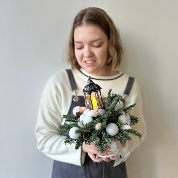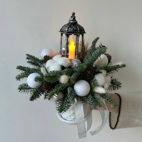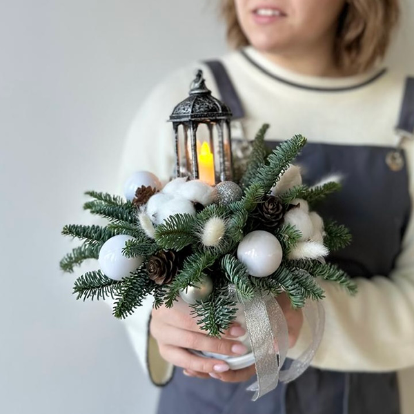 Композиция в керамическом кашпо из ароматной ели с новогодним декором популярна в этом сезоне, будет прекрасным подарком для друзей, любимых, коллег или украсит Ваш дом.