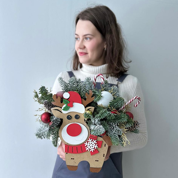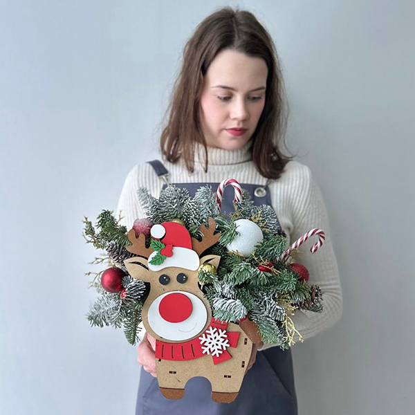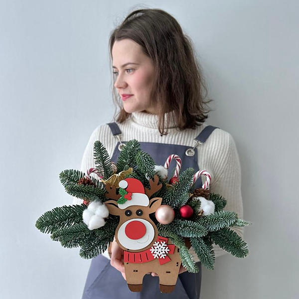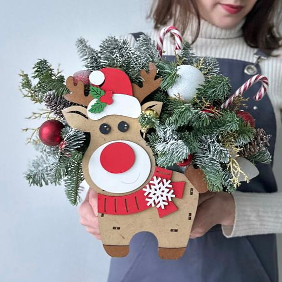 Композиция с ароматным нобилисом и новогодним декором "Рождественский олень"
