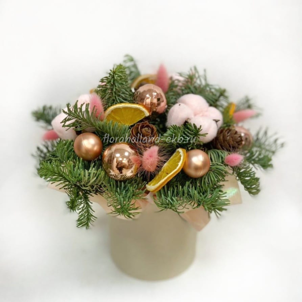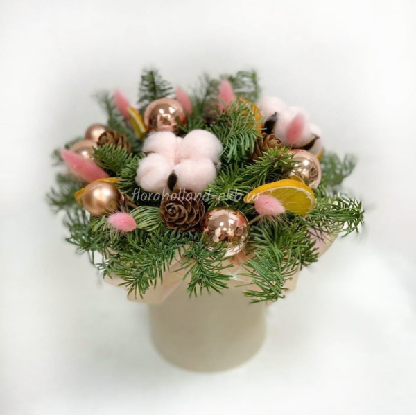 Нобилис (датская ель), хлопок, лагурус, новогодний декор