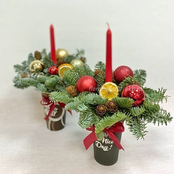 Новогодняя композиция в стакане из ароматной ели со свечой очень популярна в этом сезоне, будет прекрасным подарком для друзей, любимых, коллег или украсит Ваш дом.