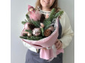 Розовый букет из нобилиса (датской ели) с шишками и новогодним декором от 2990